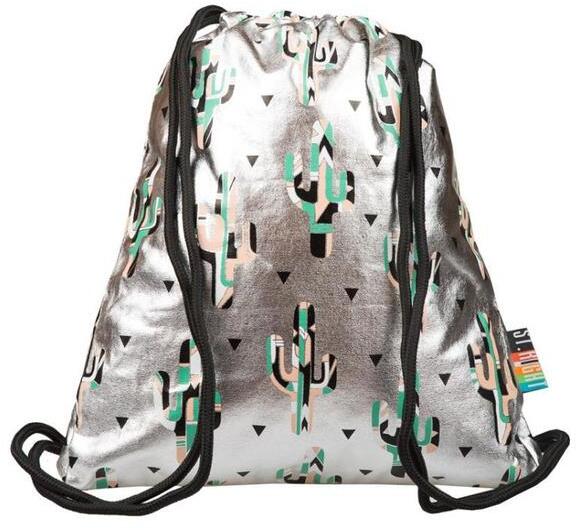 St. Right - Silver Cactus zsinóros hátizsák (623158)  trendi ezüst hátizsák színes kaktuszokkal díszítve. A teteje zsinórral szűkíthető és egy külső cipzáros zsebben tárolhatóak az apróságok. A puha sodrott zsinór szolgál vállpántként is. Könnyű és divatos hátizsák kicsiknek és nagyoknak egyaránt.