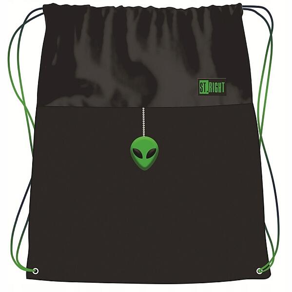 Egyszerű, mégis vagány dizájn jellemzi a fekete és zöld mintás gyerek tornazsákot. A fekete tornazsák élénk zöld UFO mintával készült.