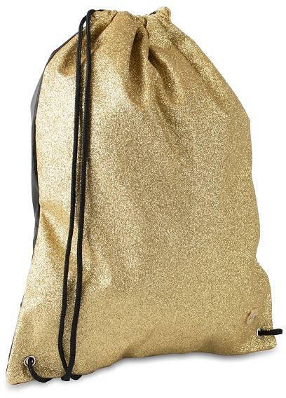 Arany színű glitteres PVC anyagból készült tornazsák fém márkajelzéssel és cipzárkocsival. A praktikus és tartós használatot a nylon behúzózsinór és a megerősített sarkok segítik. Hátsó része hálós kialakítású, mely elősegíti a szellőzést, az oldalán cipzáras zseb található. Belseje nylon béléssel van ellátva. Mérete:33x1x43 cm