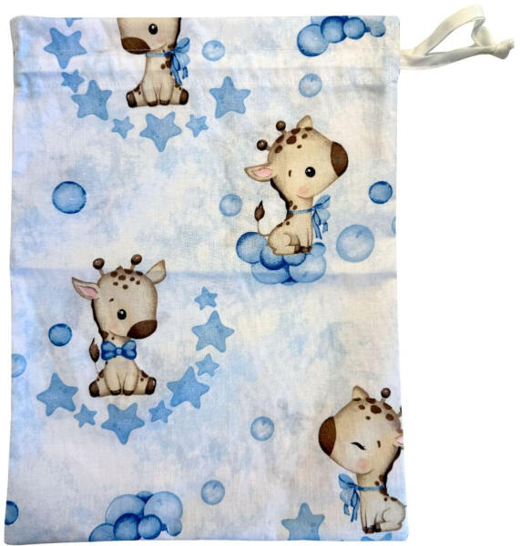 Zsiráfos tornazsák Kiváló minőségű, 100% pamutból készült tornazsák. Óvodába és iskolába is egyaránt ideális választás, melybe a gyermek könnyedén tárolhatkja tornafelszerelését. A tornazsák a tetejébe varrt zsinorral záródik. Méretei: 28x38 cm.